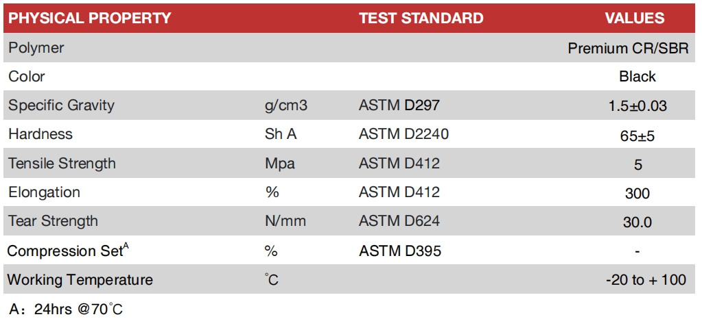 Inquire nowCommercial CR 60 Black is an economical and durable solution suitable for general-purpose applications. This rubber sheet offers moderate resistance to oils, chemicals, and weathering, making it suitable for sealing, gasketing, and protective padding.